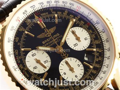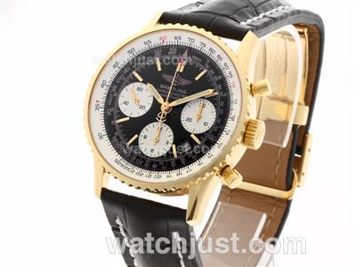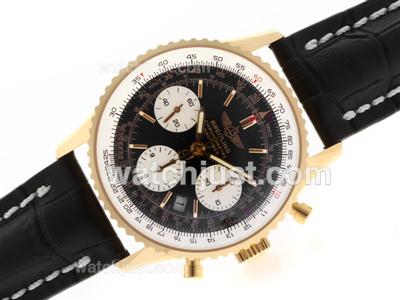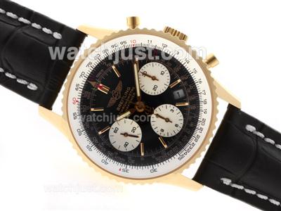Breitling Navitimer Chronograph Swiss Valjoux 7750 Movement Gold Case with Black Dial-28800 bph